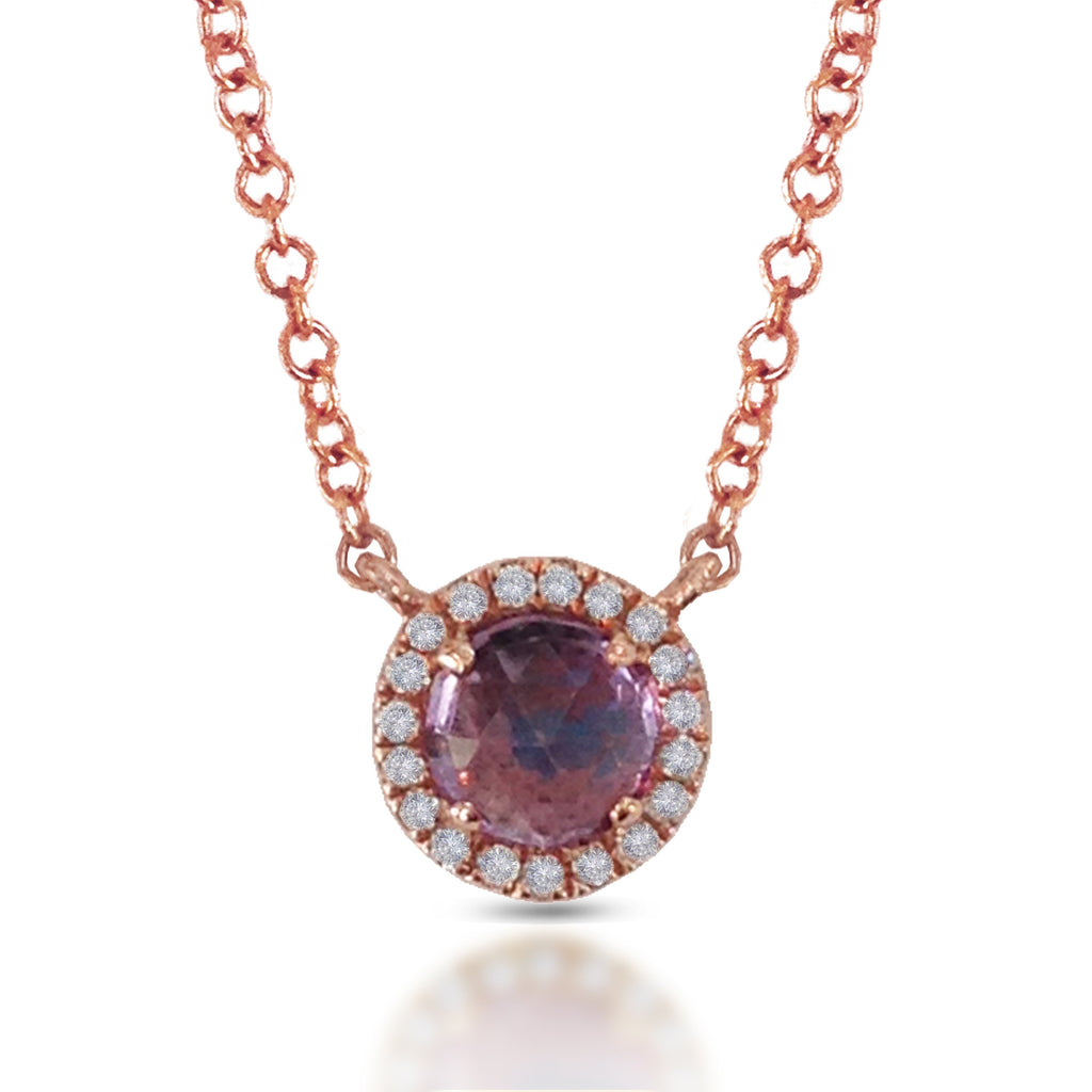 14K Gold Round Halo Diamond & Amethyst Necklace MN22501RPA
