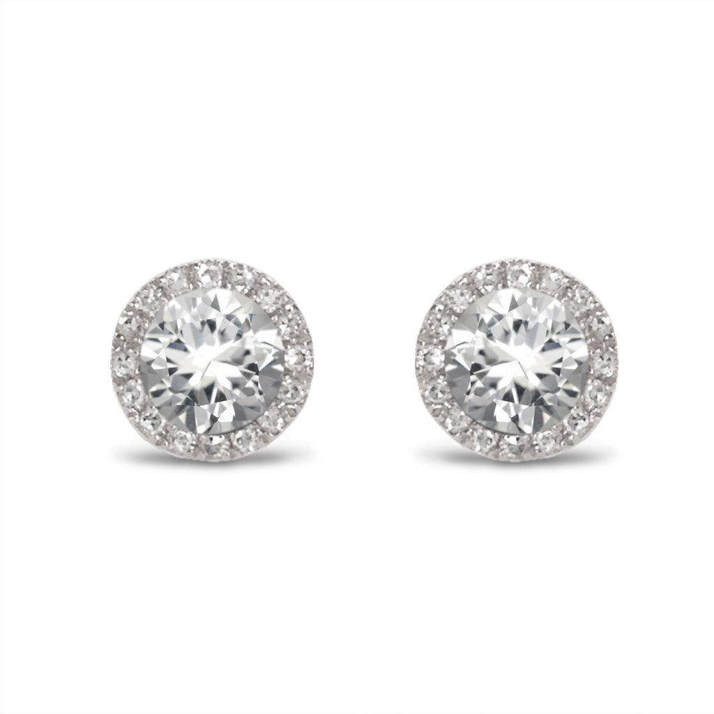 14K Gold Diamond Halo White Topaz Stud Earring ME22501AM