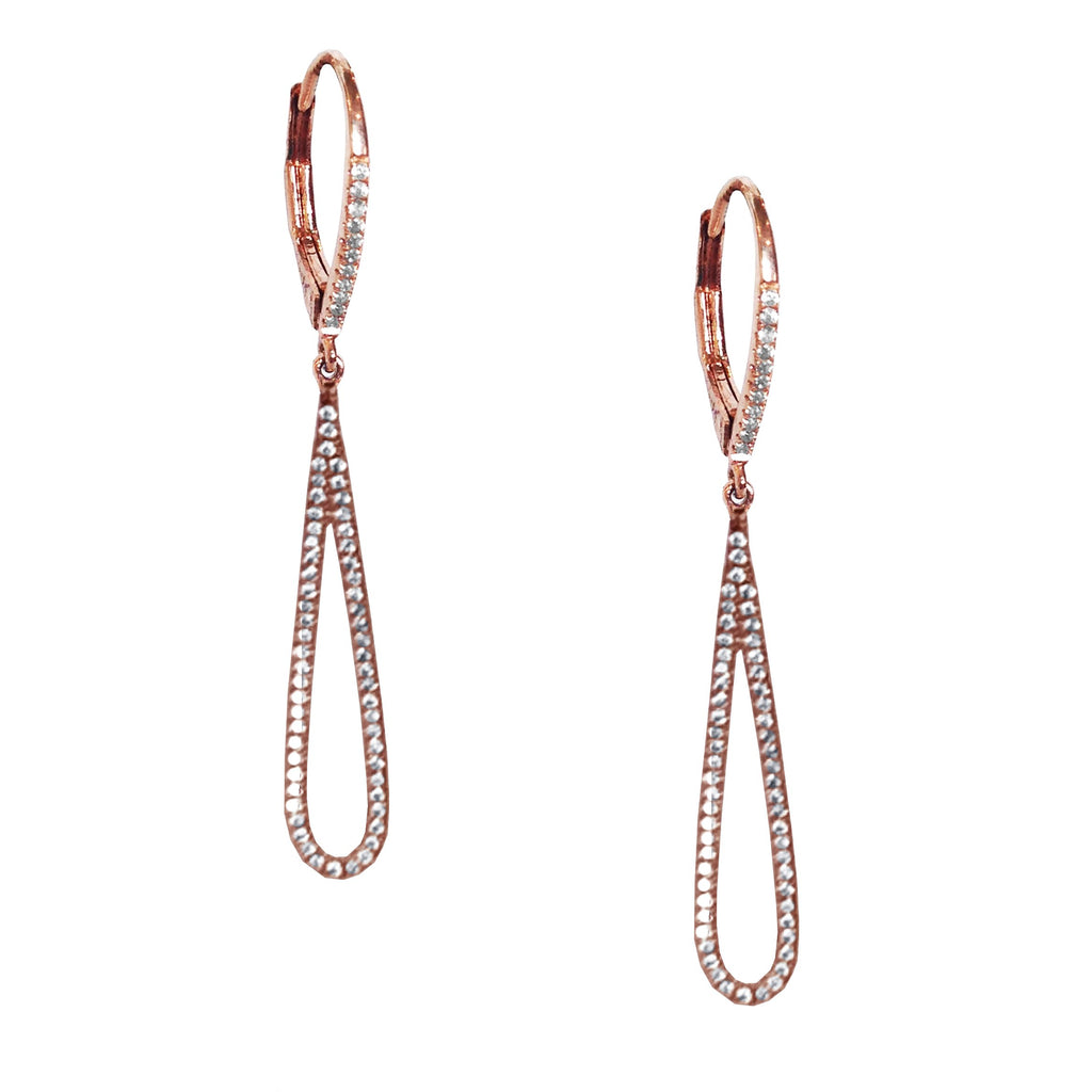 14k Gold Elongated Pave Diamond Hoop Dangle Earrings ME23724