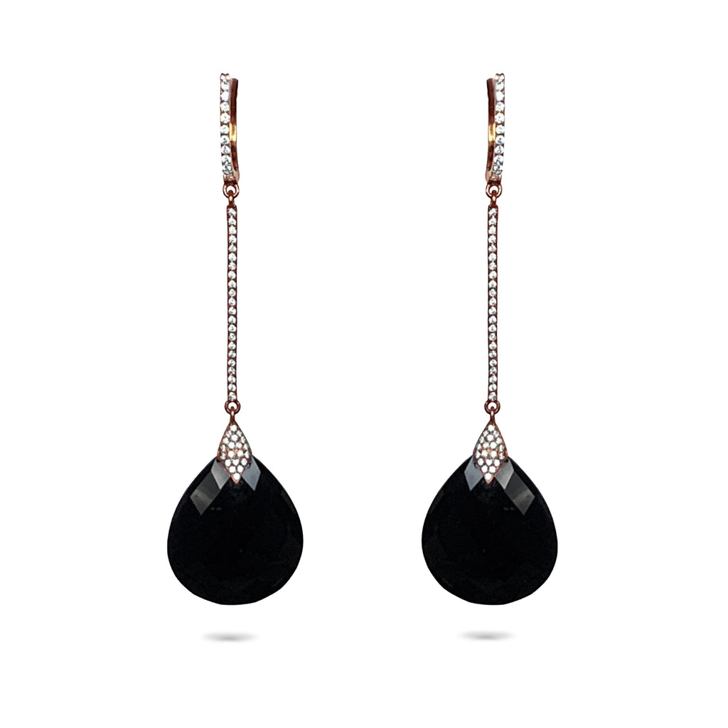 14k gold art deco onyx and diamond Drop dangle earrings ME26200