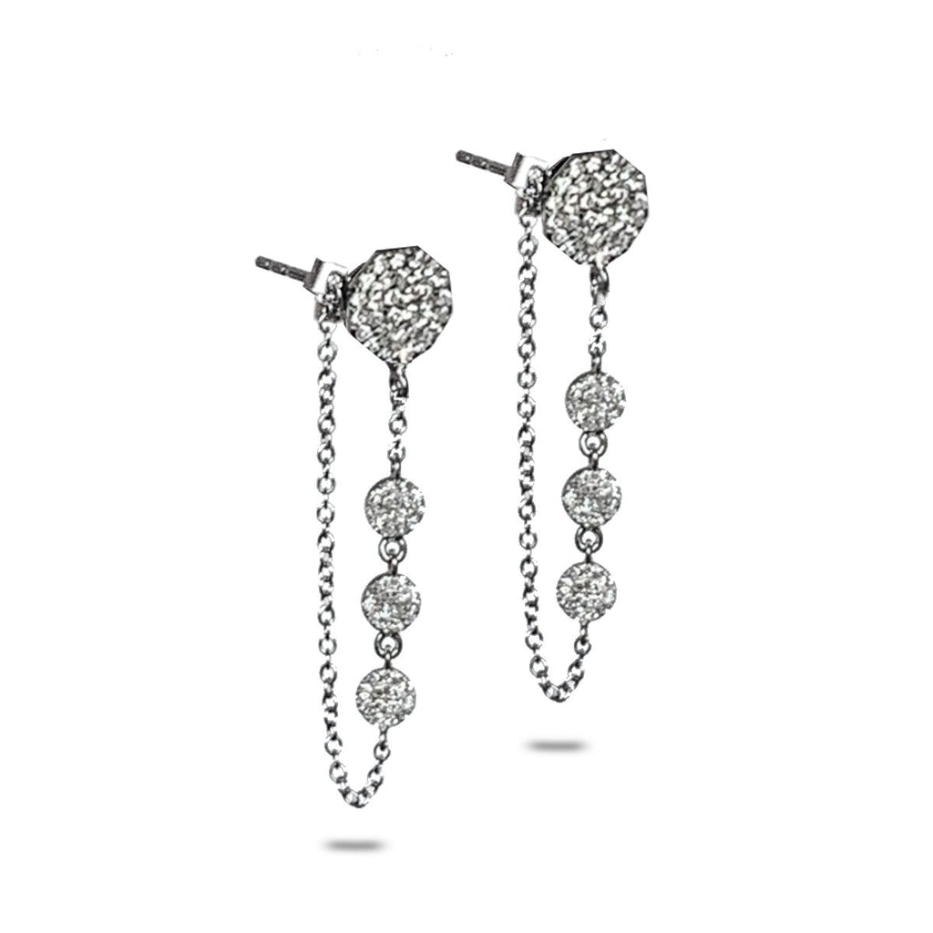 14K Gold Round Pave Diamond Discs Dangle Chain Earrings ME26807