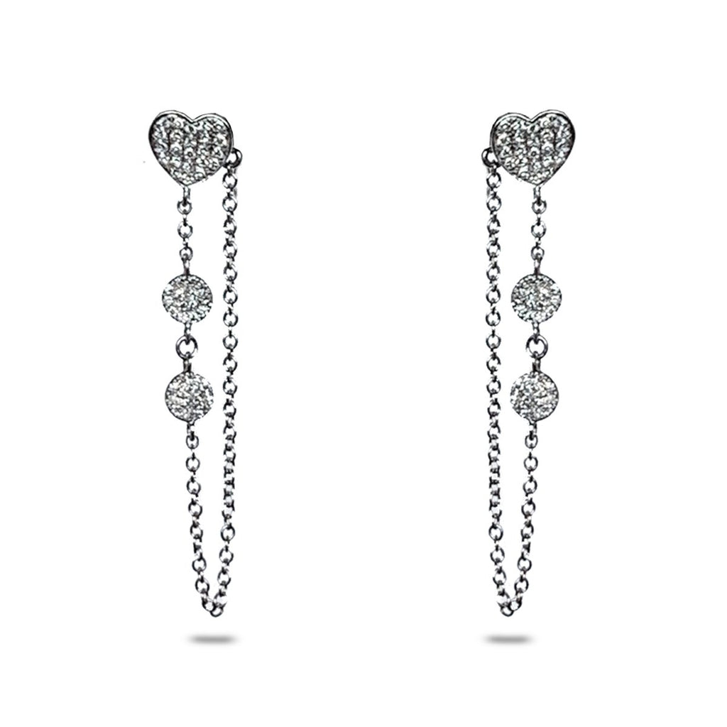 14K Heart Pave Diamond Discs Chain Earrings ME26808