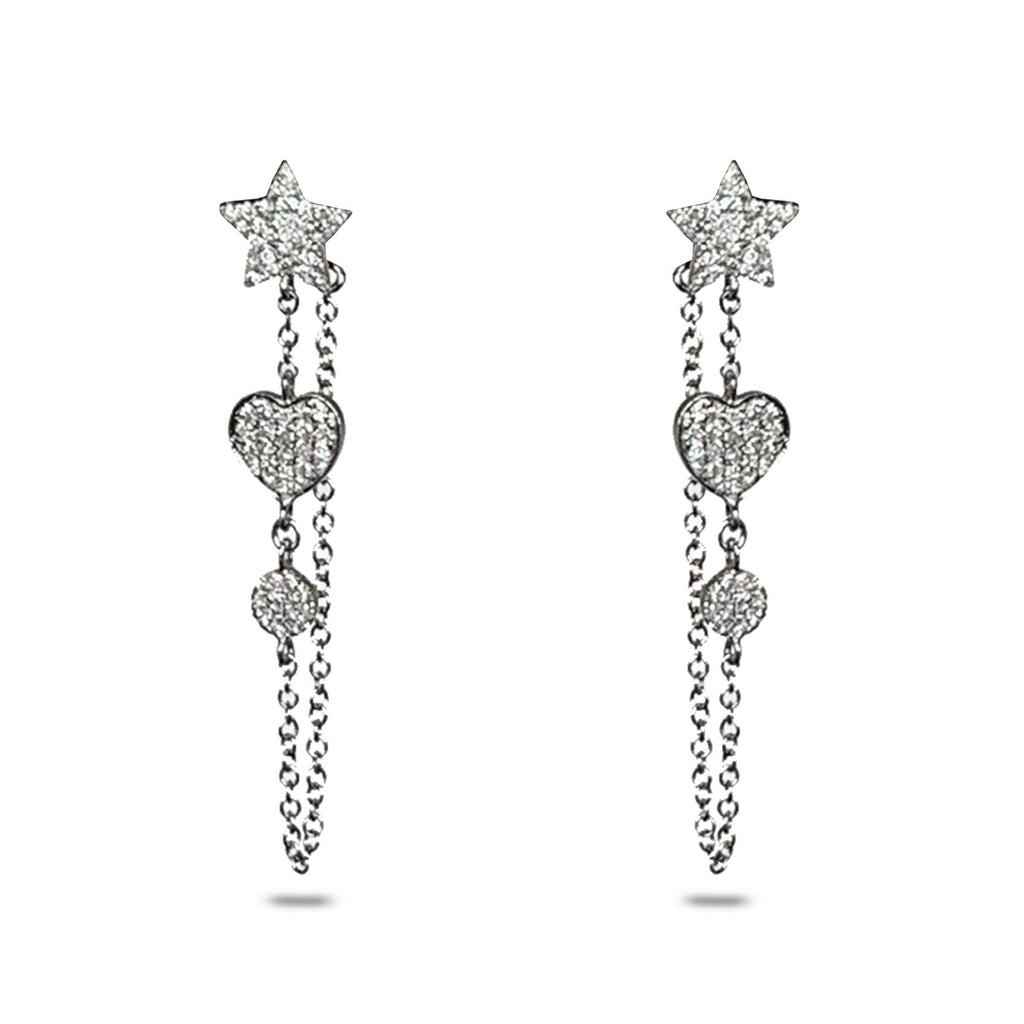 14K Star Pave Diamond Discs Chain Earrings ME26809