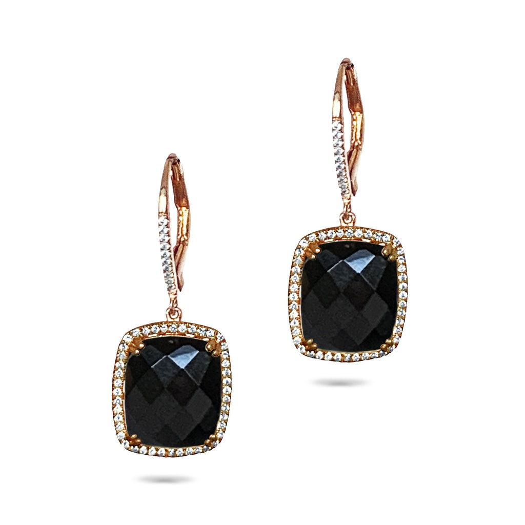 14k gold classic cushion cut hematite hoop dangle earrings ME31356HM