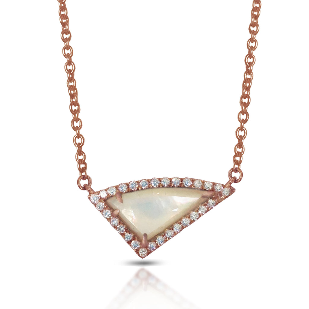 14K Gold Diamond Irregular Triangle Mother of Pearl Necklace ON1MP