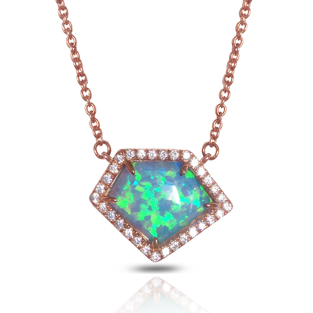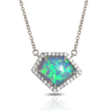 Diamond Polygon Black Opal Necklace In 14K Gold