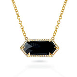 14K Gold Black Onyx Horizontal Hexagon Bar Necklace MN71557OX