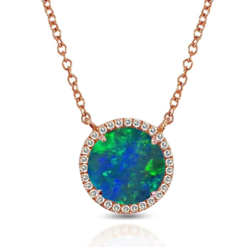 14K Round Halo Diamond & Opal Necklace MN22501OP