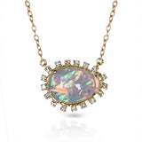 14k gold Ethiopian opal & diamond necklace MN3348