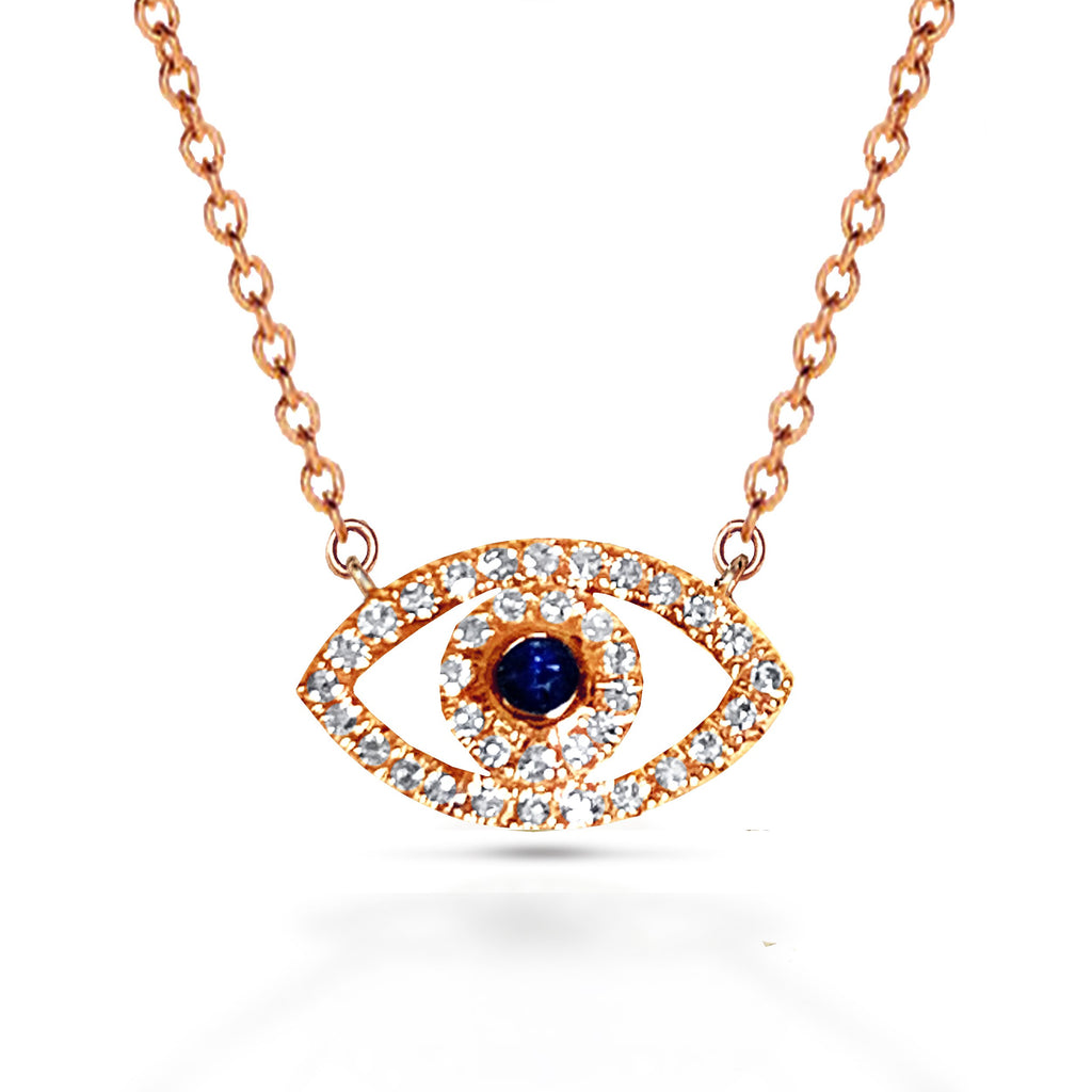 14k gold diamond blue sapphire evil eye necklace MN44910