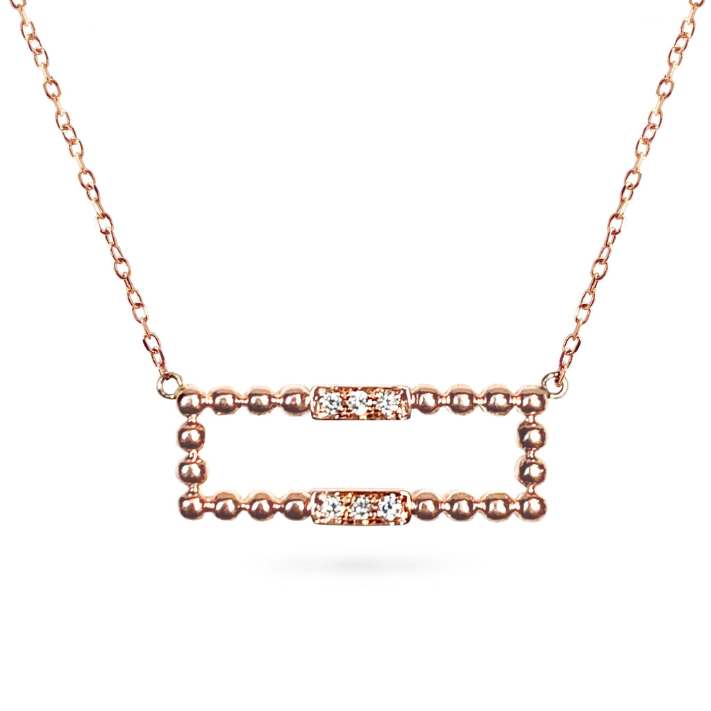 14K Open rectangular beaded diamond necklace MN45526