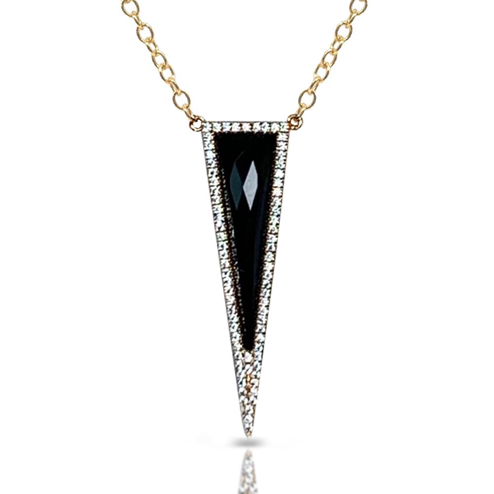 14k gold black onyx and diamond art deco necklace MN71558OXY