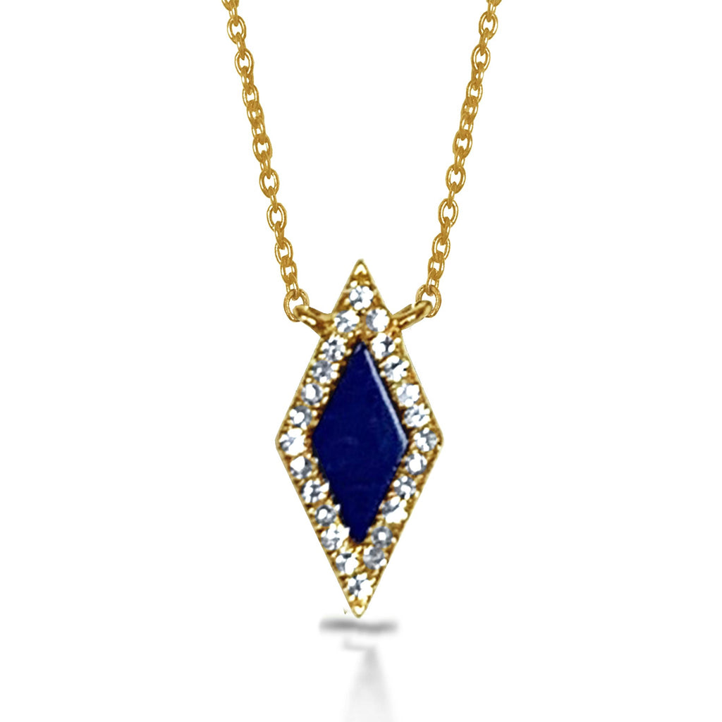 14k Gold delicate diamond shape lapis necklace MN71675LP