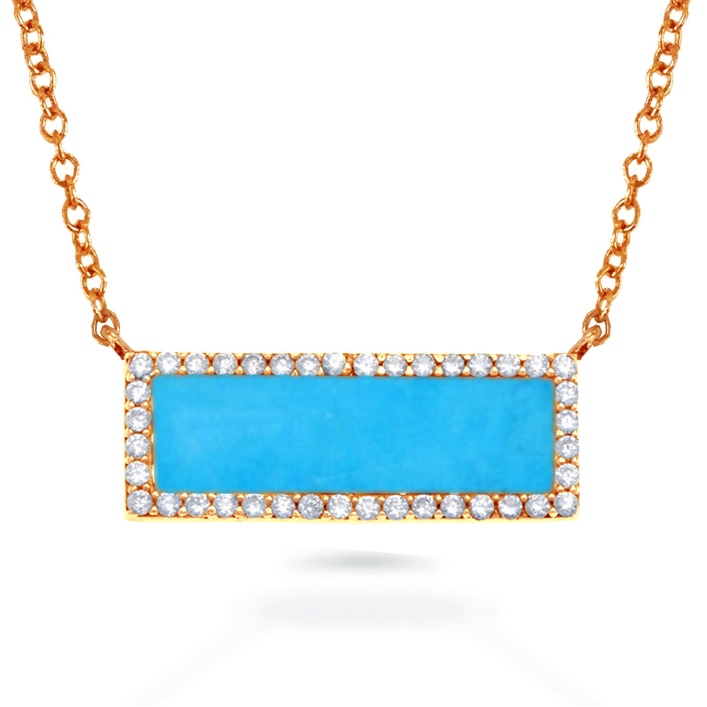 14k gold diamond turquoise horizontal bar necklace MN71681TQ