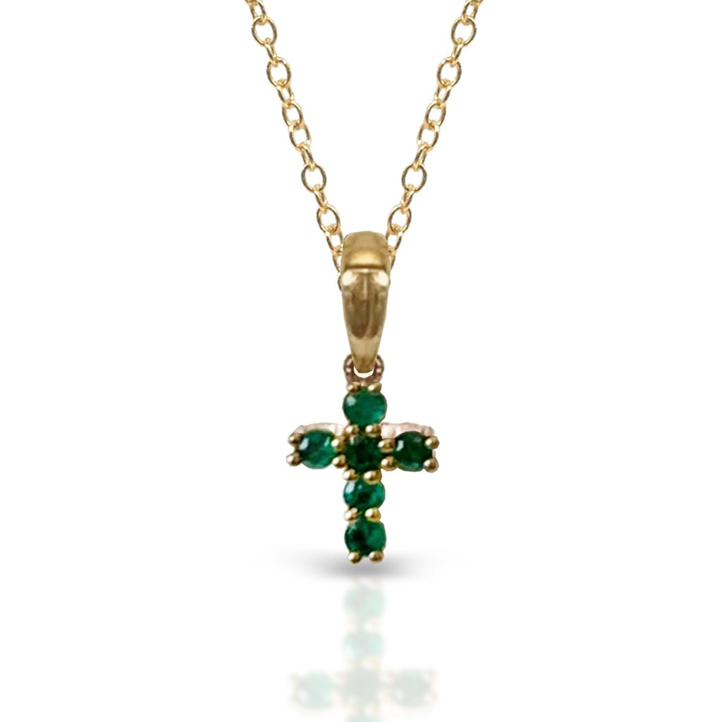 14K Petite Emerald Cross Pendant P10936E