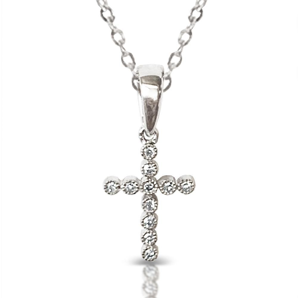 14K Gold Delicate Diamond Bezel Cross Pendant P25267