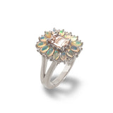 Morganite & Opal Cocktail Fashion Ring In 14K Gold