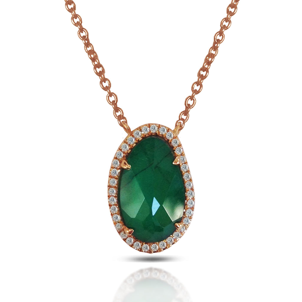 14K Oval Emerald & Diamonds Necklace P3956DE