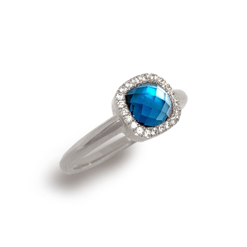 14K Gold Cushion London Blue Topaz Doublet Fashion Engagement Ring R8489