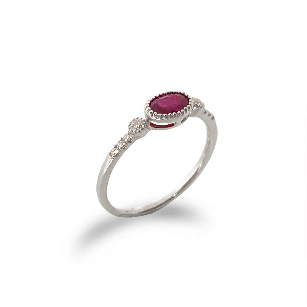 14K Oval Ruby & Diamond Fashion Stack Ring MR45621R