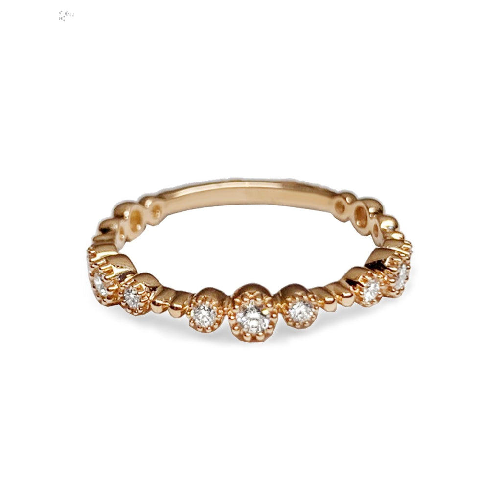 14k delicate beaded gold diamond fashion band Stack Ring SR45043