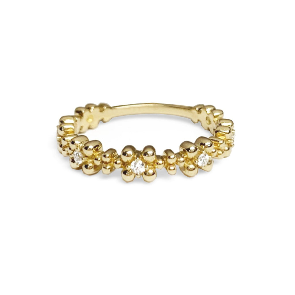 14K Gold Flower Motif Diamond Wedding Band Stack Ring SR45048