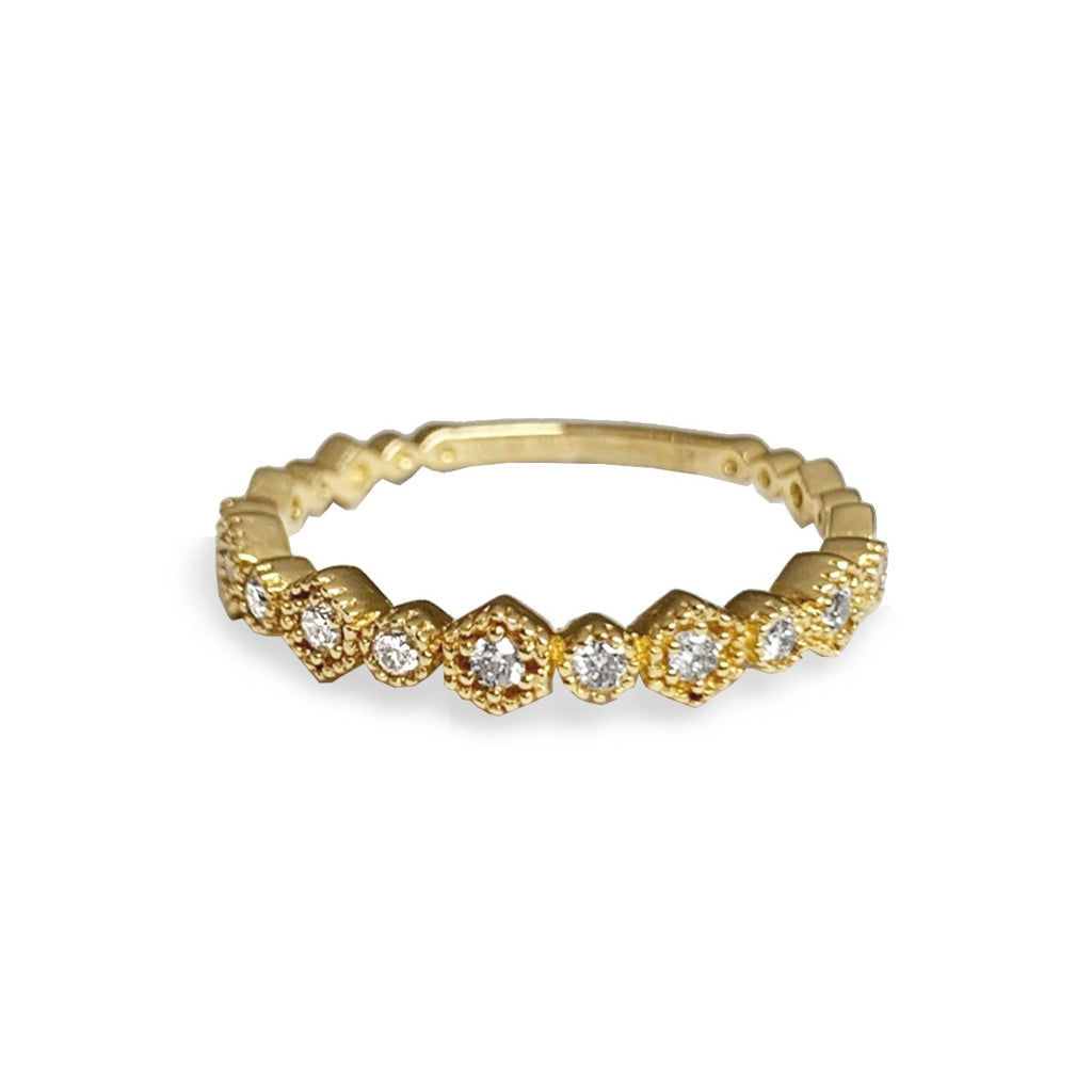14K Hexagon & Circle Diamond Band Stack Ring SR45056