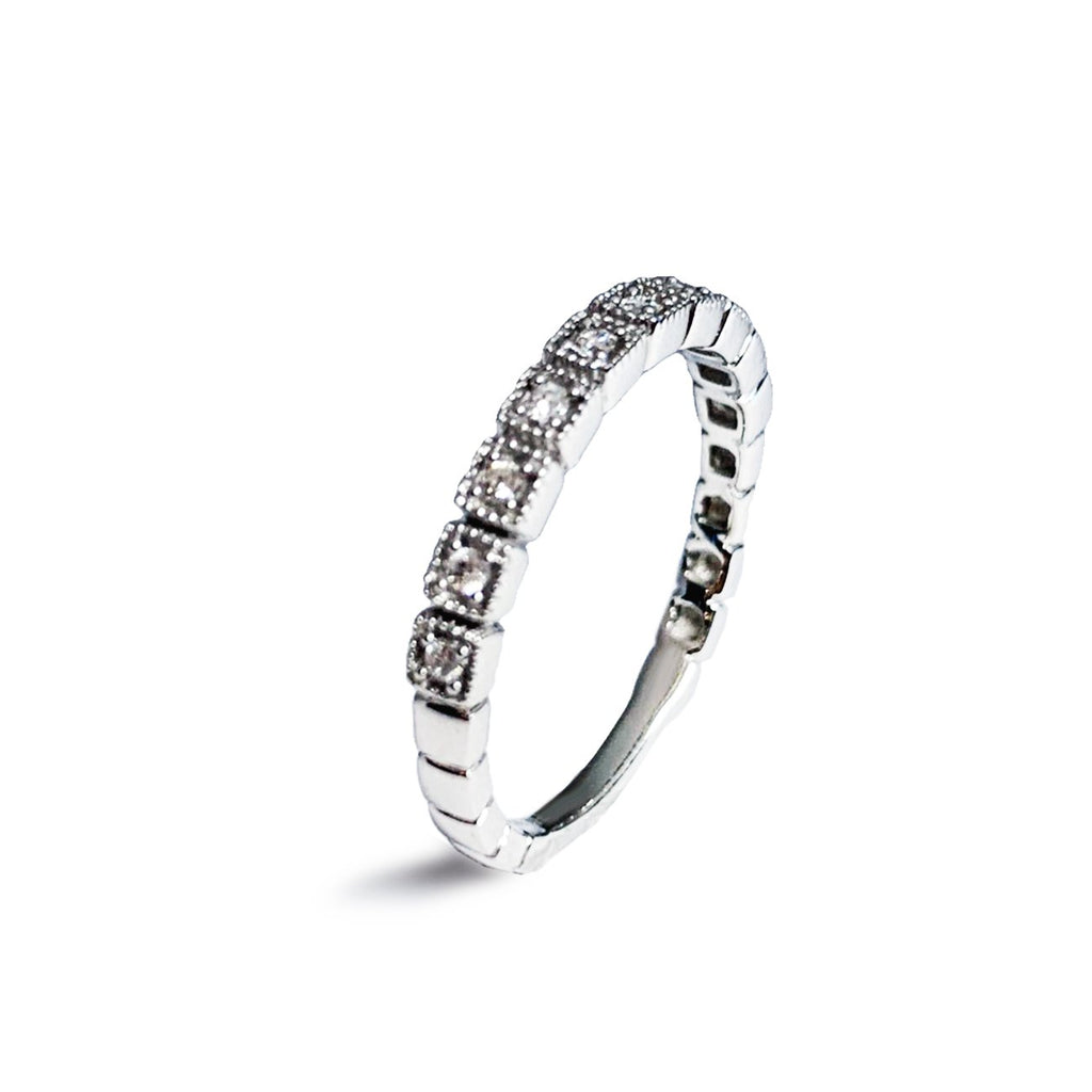 14K Square Beaded Diamond Wedding Band Ring SR45059