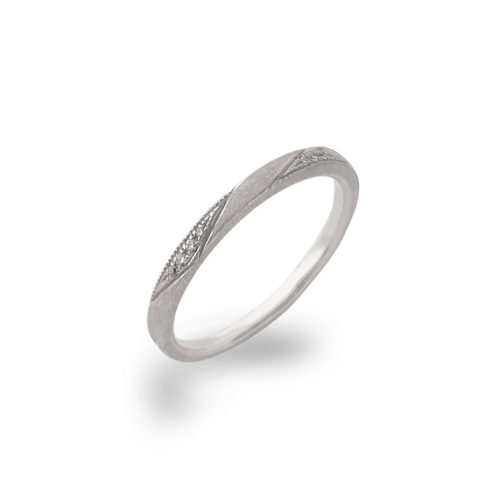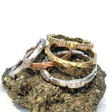 14K Brushed Gold Diamond Crescent Moon Wedding Band Stack Ring SR45163