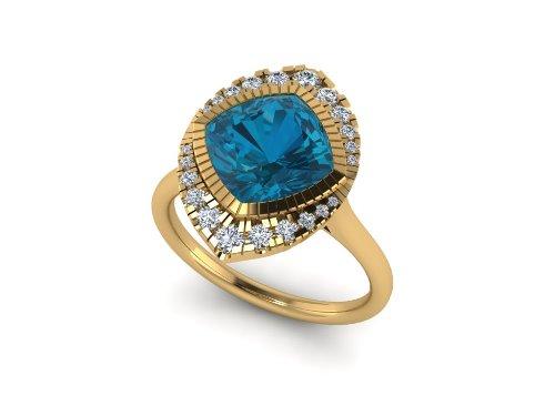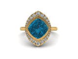 14k gold Cushion london blue topaz fashion ring MR4547