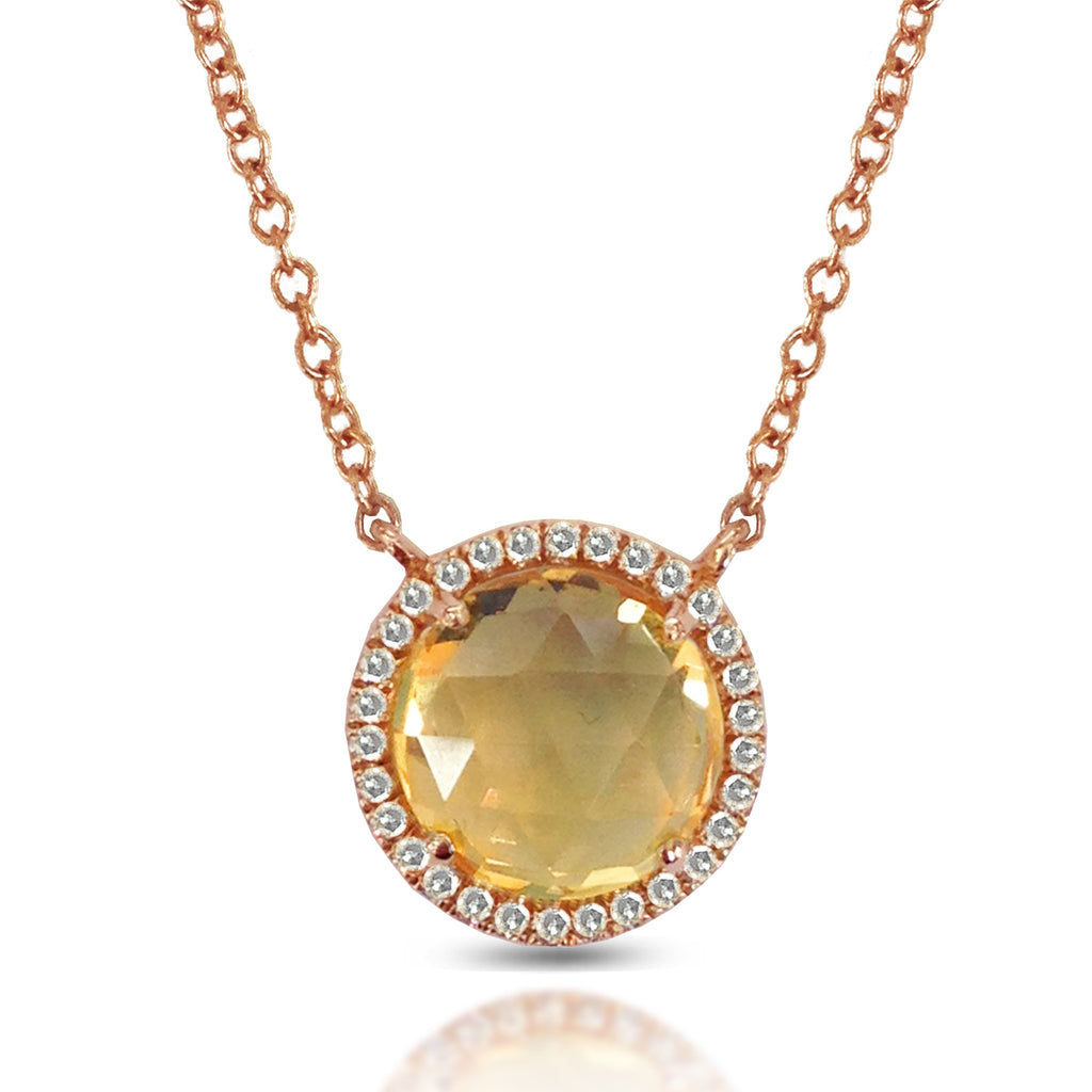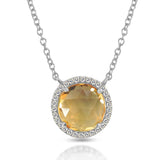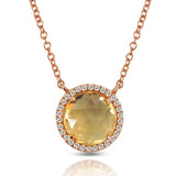 14K Gold Round Halo Diamond & Citrine Necklace MN22498CT