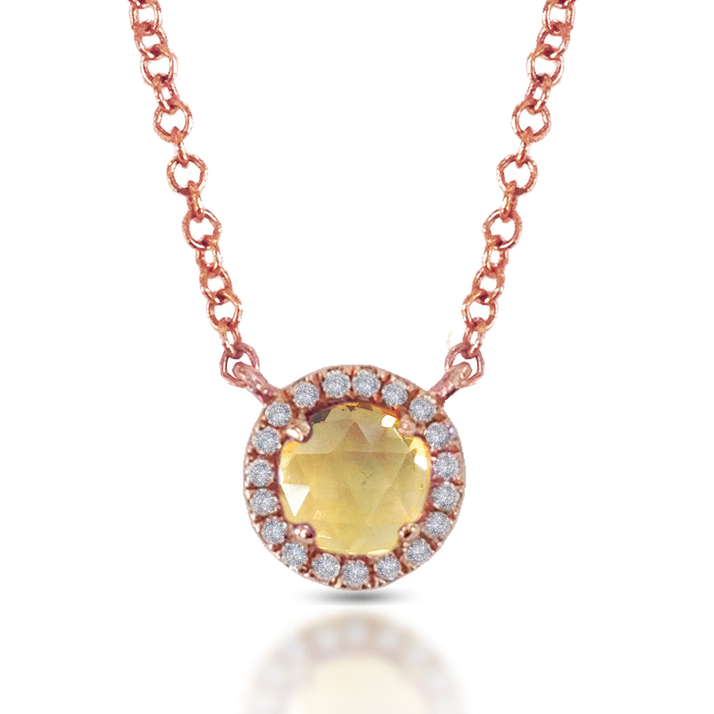 14K Gold Round Halo Diamond & Citrine Necklace MN22501CT