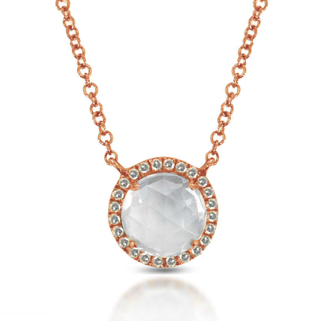 14K Round Halo Diamond & White Topaz Necklace MN21894W