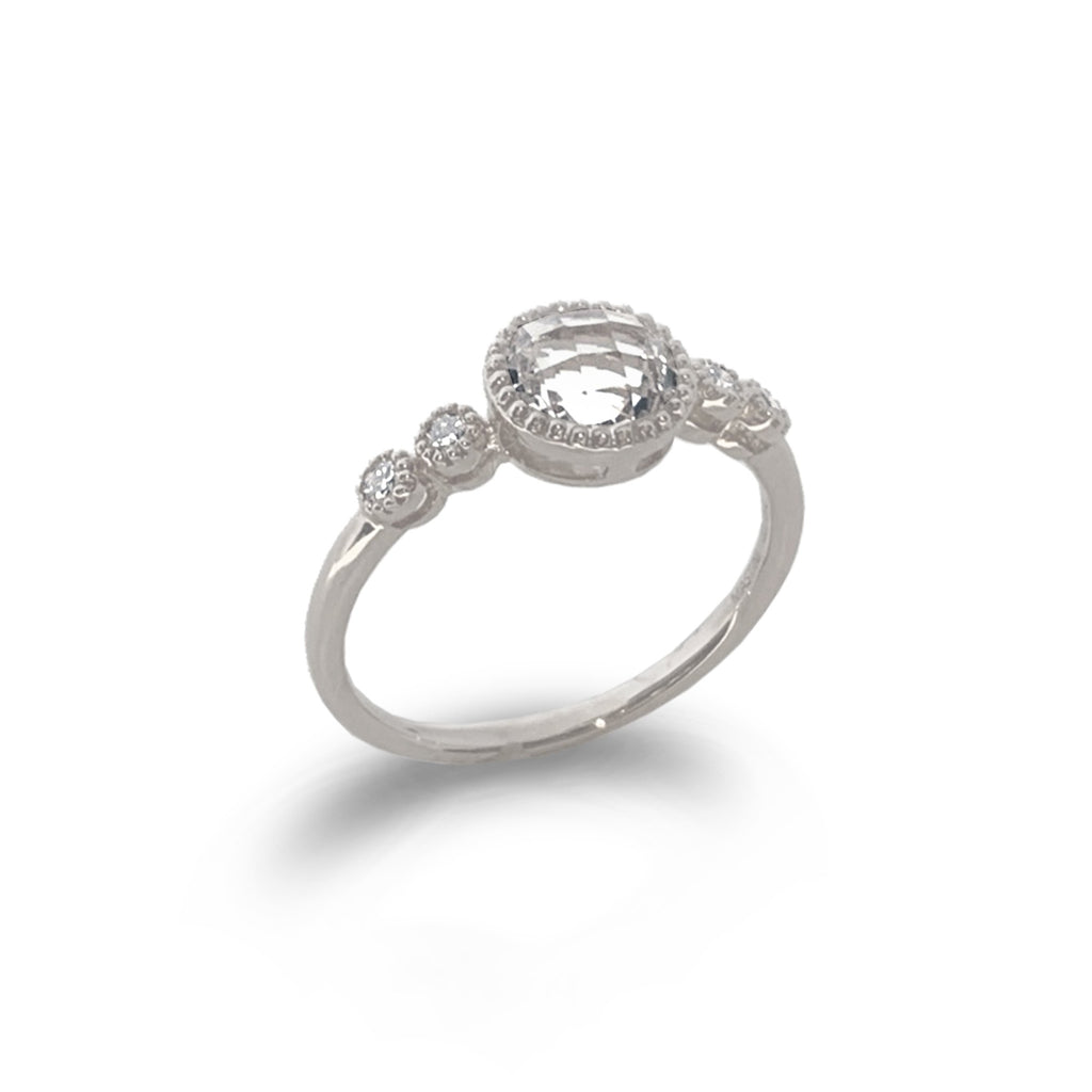 Stone Information:  1  6.5 mm Round Center White Topaz   1.00  cts